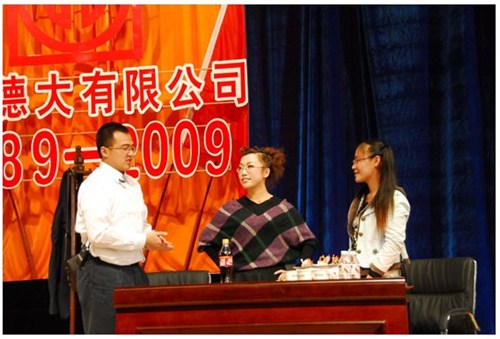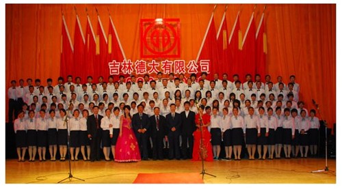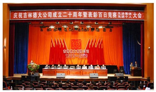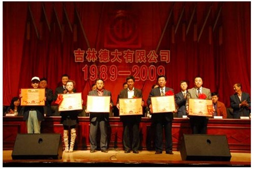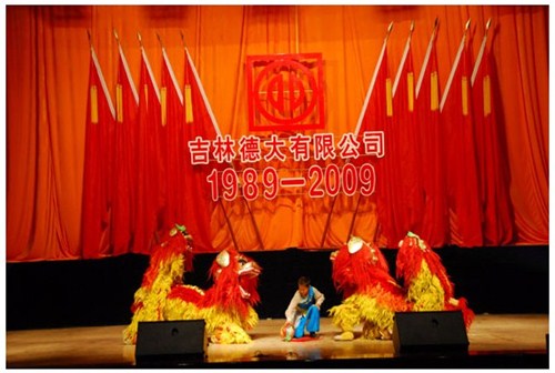 舉世同歡,六十載華夏慶盛世太平, 載歌載舞,二十年德大賀巨龍騰飛。 金秋九月,碩果飄香。在這收獲的季節(jié),我們迎來了偉大祖國六十周年慶典,同時(shí)也迎來了吉林德大有限公司成立二十周年華誕,我們祝福偉大祖國繁榮富強(qiáng),祝福德大公司事業(yè)蒸蒸日上。 二00九年九月二十八日,中共吉林德大有限公司黨委、工會(huì)、共青團(tuán)委、婦委會(huì)在德惠市文化宮聯(lián)合舉辦“慶祝吉林德大有限公司成立二十周年暨表彰百日競賽先進(jìn)集體、先進(jìn)個(gè)人大會(huì)”。大會(huì)從下午一時(shí)開始,共進(jìn)行了四個(gè)小時(shí)。大會(huì)由中共吉林德大有限公司黨委書記陳玉和主持。參會(huì)的公司領(lǐng)導(dǎo)有:于建平總裁、劉繼仲副總裁、唐彬副總裁、董事會(huì)殷淑蓮董事等,公司總部、各事業(yè)部主管及員工參會(huì),參會(huì)總?cè)藬?shù)近800人。 大會(huì)共進(jìn)行五項(xiàng)議程。 首先由于建平總裁發(fā)表重要講話,于總裁向全體員工表示衷心的感謝,感謝全體員工多年來為公司做出的巨大貢獻(xiàn),同時(shí)向大家表示節(jié)日的祝賀,并回顧了公司發(fā)展的歷程,對公司今后的發(fā)展提出了新的要求和希望。 接下來公司黨委副書記劉忠臣宣讀了表彰決定,對在“振興德大、從我做起”百日競賽活動(dòng)中涌現(xiàn)出的先進(jìn)集體及先進(jìn)個(gè)人進(jìn)行表彰,由主席臺(tái)就坐的各位領(lǐng)導(dǎo)向獲獎(jiǎng)的先進(jìn)集體和先進(jìn)個(gè)人頒獎(jiǎng)。共評選出先進(jìn)集體6個(gè)、先進(jìn)個(gè)人98人,其中優(yōu)秀黨員15人,優(yōu)秀團(tuán)員 9人,青年突擊手10人,巾幗標(biāo)兵22人,勞動(dòng)模范21人,生產(chǎn)能手21人,由食品事業(yè)品管部高鳳紅代表先進(jìn)集體和先進(jìn)個(gè)人講話,她代表先進(jìn)集體和個(gè)人表達(dá)了繼續(xù)努力,為公司發(fā)展做貢獻(xiàn)的決心。先進(jìn)集體、先進(jìn)個(gè)人的表彰起到了鼓舞士氣、振奮人心的作用,給廣大員工樹立了工作的典范和學(xué)習(xí)的榜樣。 頒獎(jiǎng)儀式之后舉行了盛大的文藝演出,參加演出單位有種禽事業(yè)部、肉雞自養(yǎng)事業(yè)部、肉雞放養(yǎng)事業(yè)部、飼料事業(yè)部、食品事業(yè)部、總裁室、采購中心等。節(jié)目類型多樣,內(nèi)容豐富多彩,有獅子舞、男女聲二重唱、四句半、藏族舞蹈、獨(dú)唱、小品、坐唱、詩朗誦、音樂快板、京劇聯(lián)唱、配樂詩朗誦、大合唱、二人轉(zhuǎn)等。四位主持人更是風(fēng)采照人,剛一登臺(tái)就博得臺(tái)下熱烈的掌聲,被于總裁譽(yù)為“有專業(yè)水平”。演出的成功源自周密的組織和密切的配合,在公司工會(huì)的組織下,各部門密切合作,很多幕后人員付出了辛勤的汗水。尤其是來自一線的演職人員,為了這次演出,他們不怕苦、累,在繁忙的工作之余擠出時(shí)間排練節(jié)目,精彩的演出得到了公司領(lǐng)導(dǎo)和觀眾的贊譽(yù)。坐唱《德大春風(fēng)暖人間》取材于公司的真人實(shí)事,表現(xiàn)的是公司員工捐款挽救一位員工家屬的感人事跡。大合唱《我的祖國》、《團(tuán)結(jié)就是力量》等紅色歌曲,唱出了德大人的激情,唱出了德大人的心聲。原創(chuàng)歌曲《贊美我德大,贊美我家鄉(xiāng)》更是唱出了德大員工對德大的熱愛和期望。整個(gè)大會(huì)氣氛熱烈,演員們的精彩演出不斷把大會(huì)推向高潮。 最后,全體演員高唱“歌唱祖國”,大會(huì)在歌聲中圓滿結(jié)束。