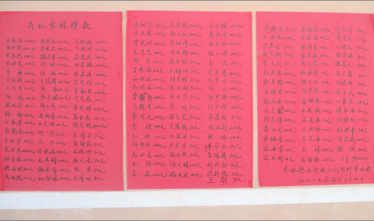 “一方有難,八方支援,奉獻愛心”是中華民族的傳統美德,為孫寶輝同志不錯過最佳治療期,我吉林德大有限公司飼料事業部全體同仁,在姜殿昌副總經理的帶動下,于2013年5月22日為孫寶輝同志捐款9540元人民幣,以解其燃眉之急。點點愛心,匯集成河,無私助人,真情暖人心